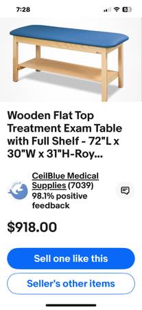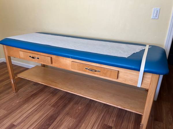 Three examination tables available. Very good condition. Minor signs of use, pictured. Used in a pediatric medical practice.
