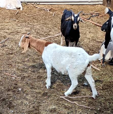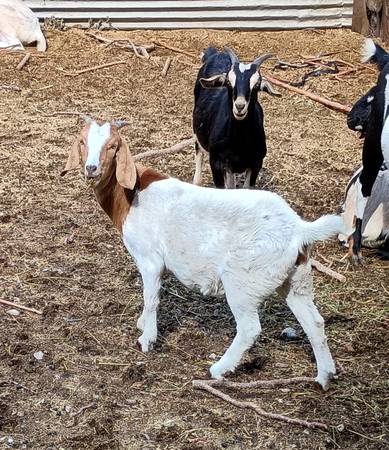 I have 2 young goats available, both about 6 months old. I have a Nubian/la mancha wether and a Boer doeling. Asking $175 for the wether and $225 for the doeling or both for $300. Serious only...