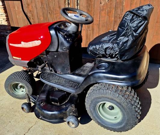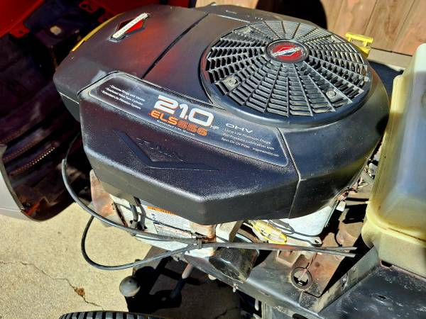 Husqvarna lawn tractor with 21 HP extended-life series Briggs and Stratton motor and large 48 inch mowing deck. Automatic transmission.