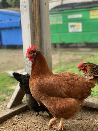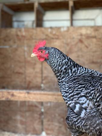 Barred Plymouth Rocks, Black Australorps, Easter Eggers (Ameraucanas), Sexlinks, Buff Orpingtons, New Hampshire Reds, and Rhode Island Reds.
