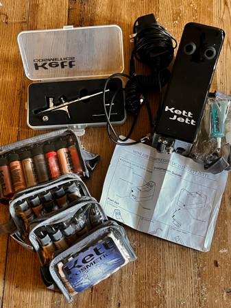 Kett Airbrush Makeup Kit- professional airbrush compressor for liquid makeup. Hundreds of dollars worth of liquid makeup included, barely used! I'm also throwing in LOTS of extras: creme makeup palettes (all hues), brush cleaner, setting powder, etc. New it retails for over $1000.00. This is a must-have for makeup artists and cosmetologists. Easy to use and fun whether you are a pro or novice. Lots of instruction videos online. FYI you do not need a cosmetology license to do makeup professionally - get started! Price is firm. Can ship via USPS OR PICK UP IN CARMEL. INCREDIBLE DEAL!