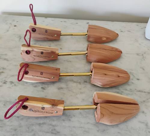 (2) sets of cedar wood shoe trees ; metal spine. Demo photo shown in size 9.5 - adjusts to approx sizes 6-11. Shown inside size 9.5 shoes (shoes for sale under separate listing)