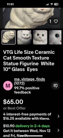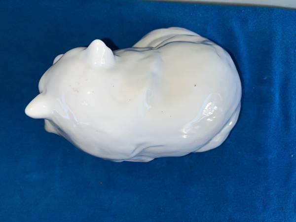 The VTG Life Size Ceramic Cat Smooth Texture Statue Figurine in white with 11”glass eyes is a meticulously crafted collectible piece that captures the essence of a cat with its smooth texture and lifelike features. Made from ceramic or porcelain, this statue figurine exudes a sense of elegance and charm, making it a perfect addition to any cat lover's collection. With its United States craftsmanship, this figurine showcases the artistry and attention to detail that collectors appreciate in unique and distinctive pieces.