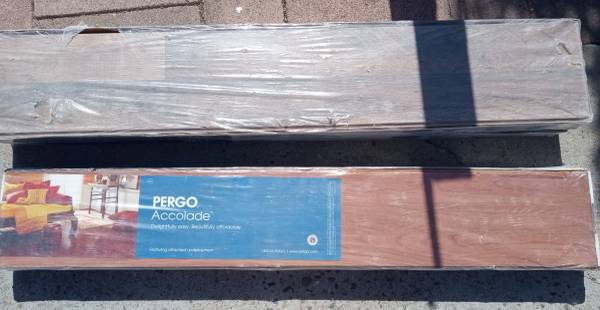 $20/box or $45 for all 3 boxes. 1 box of Pergo Accolade flooring planks in Bedford Cherry color (17.59 sq ft of flooring) 2 boxes of Style Selection flooring planks in Florian Oak color (47.92 sq ft...