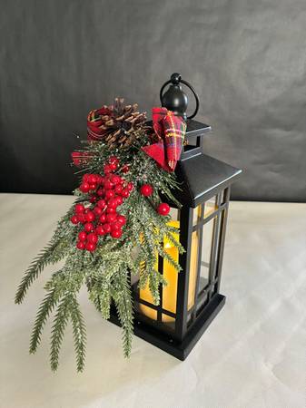 Crafted with a metal frame and glass panes on all sides, adorned with red holly berries and pine cones, these uniquely designed decorative lanterns add festive flair to any space
