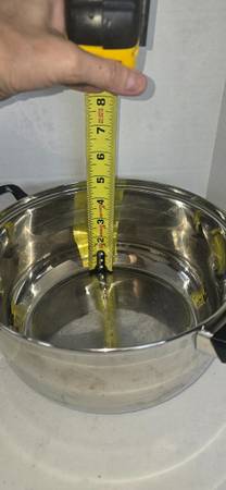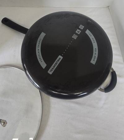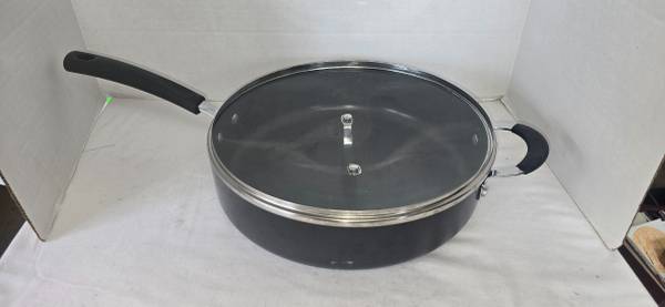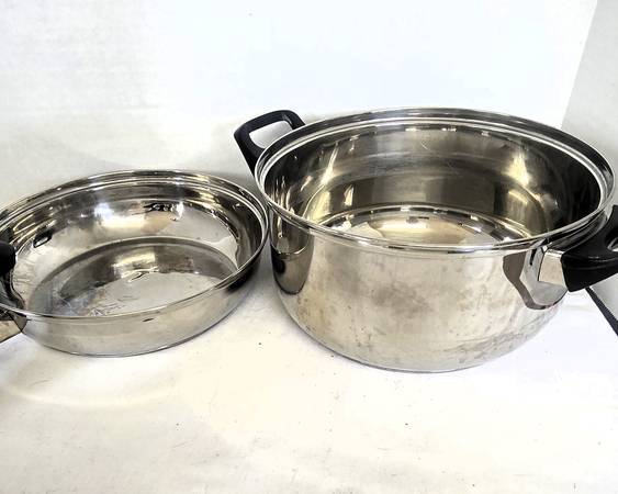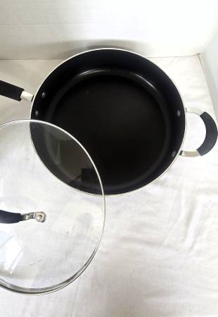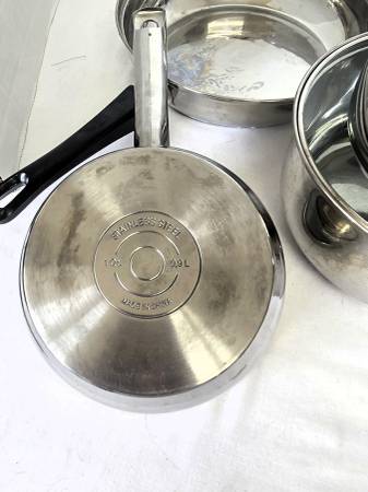 Like new Cookware set. Saucepans by Gibson. 5.5qt non-stick enamel pain. Used as a spare set in our RV. See photos for signs of wear. Stainless will be perfect with proper cleanup.