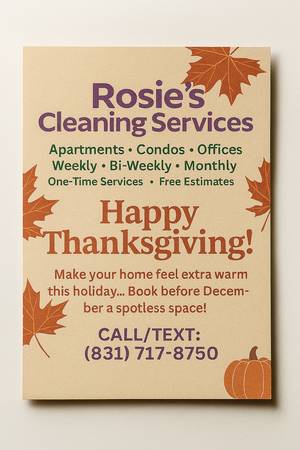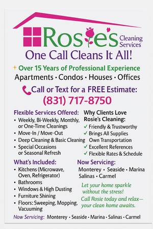 ππ»ββοΈI'm Rosie, an independent housekeeper with 15+ years of experience. Whether you're looking for a one-time deep clean or regular upkeep, Iβll make your home sparkle.