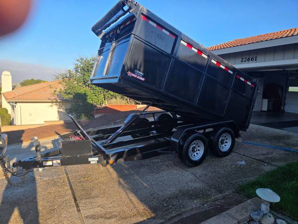 5 Star 6x12 heavy duty dump all metal high sides purchased new from 101 trailers works great turn key electric breaks on both Axles half ton towable 5 ton pay load pink in hand. May trade no junk...