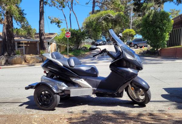 This 2005 Honda Silver Wing has been converted to a Maxi Scooter Trike. Automatic with a 600 cc engine. Registered until Jan. 2026 and runs like a champ. Great gas mileage with 11,980 miles. Includes two helmets, trickle charger, and an outdoor cover. Recent service check and new battery installed.