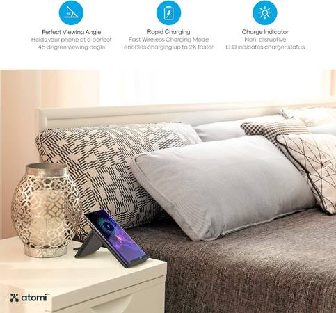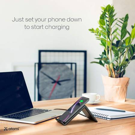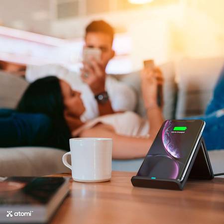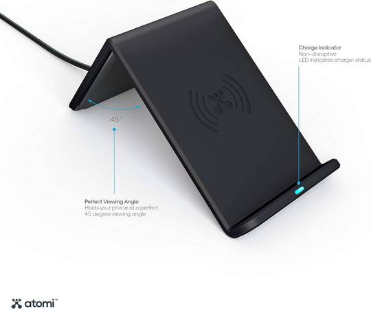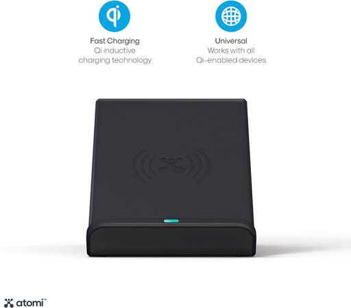 The Atomi Qi Wireless Charge Stand is the perfect stand to power-up your phone while you use it. Smartly designed to hold your phone at a 45° viewing angle, this charging stand is equipped with Qi technology and will charge up to two times faster in fast charge mode. It also works with all Qi enabled devices, Apple to Android.