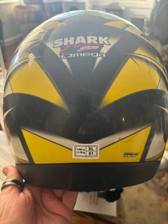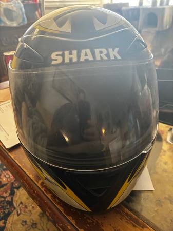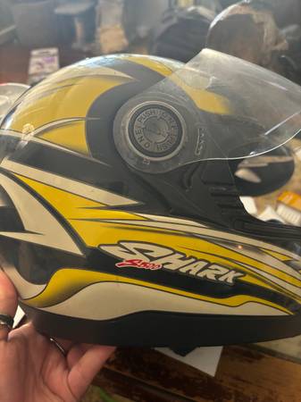 Shark S500 Motorcycle Helmet XL 61 Yellow, Black and White Paint chipping in some spots on top but otherwise in good condition. If interested please respond to the ad.