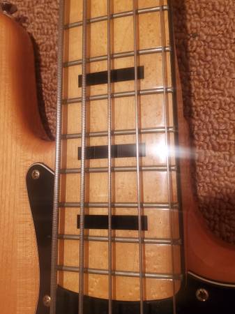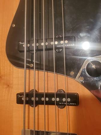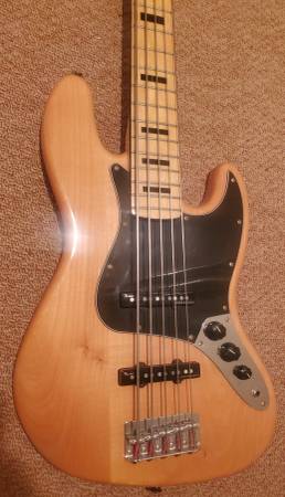 Hely folks, I have a gorgeous Classic Vibe 5-string Jazz Bass in natural color for sale. It has been upgraded with Fender Noiseless pickups ($250). Beautiful natural color body with very little wear. The maple neck has birdseye looking markings on top with an upgraded string tree. Set up with newer flat wound strings. Neck is straight, has low action and plays great. Pickups sound fantastic, vintage tones are clear and there are no electronic issues, hum, etc. This one looks, feels and plays like a USA model for 1/3 the price!
