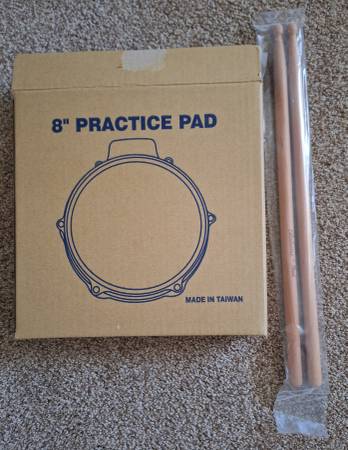NEW! Belsona by Pearl 8 inch practice pad includes a pair of drum sticks. Never opened, still in packaging.
