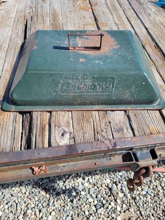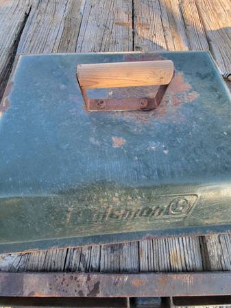 Missing your vintage Coleman wood burning barbecue lid? Enameled green.
