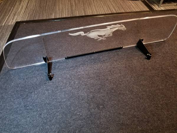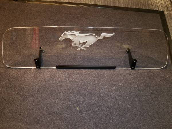 Late model Mustang wind deflector without light kit. I believe it fits 2005 thru 2014 Mustangs. Etched pony logo in white. I don't have the car anymore and would like to sell it for $150 or best...