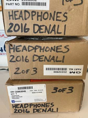 6 Wireless Headphones Brand New In The Box with Batteries. Works with 2016 Denali and other Models - https://accessories.gmc.com/product/dual-channel-wireless-infrared-(ir)-headphones-(set-of-two)-22863046