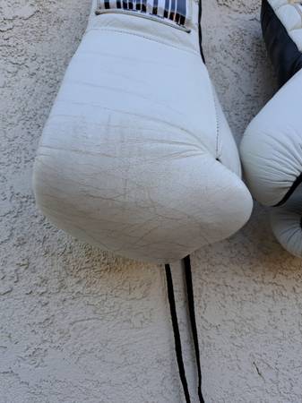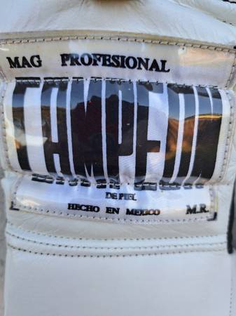Boxing Gloves LEATHER Lace Up BRAND: MAG PROFESSIONAL CAMPEON MATERIAL: LEATHER COLOR: WHITE/BLACK Lace Up Gloves Made In Mexico CONDITION: USED, GOOD $45.00 CASH ONLY SOLD AS IS.