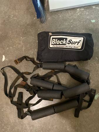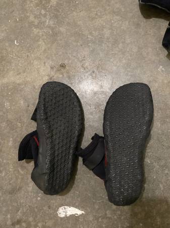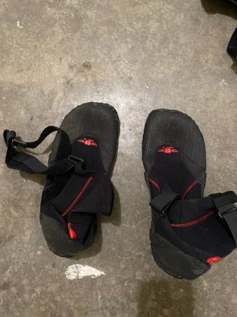 1. Size 10 Hotline Booties: $10 2. Size Large Churchill swim fins $10 3. Old Surfboard racks $5 4. Size Large 4:3 rip curl wetsuit, back zipper is corroded. : free