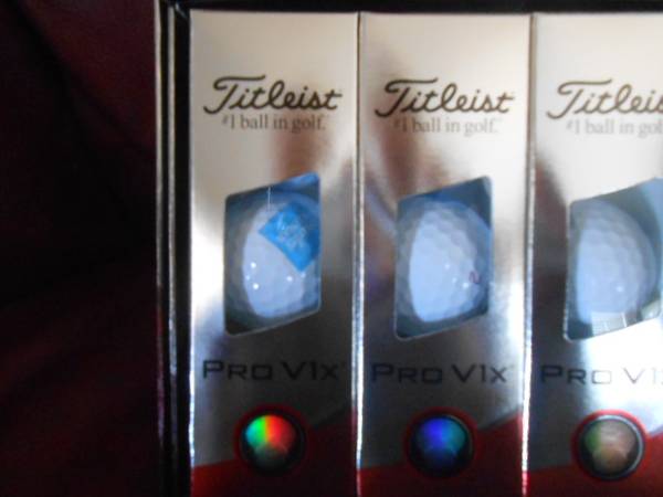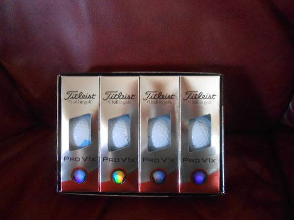 New, unopened 12 pack of Titleist Pro V1x. Has a Charles Scwab logo on each ball (think of the time it will save you marking your ball!) The 1x 'supposedly has a higher flight path'. Don't we all...