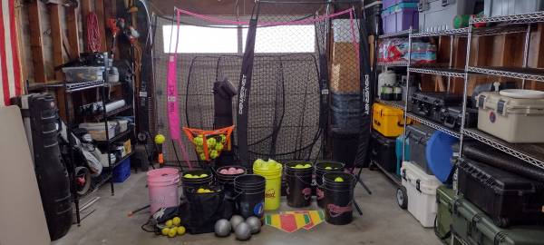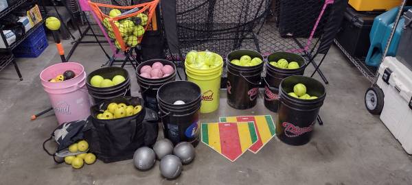 2 Black Bownets + 2 Additional Pink Nets 1 Travel Tube 1 Utilitee + 1 Schutt Tee 1 Tri Basket Ball Holder 1 Front Toss Screen Home Plates Practice Balls - Wiffle Balls - Sponge Balls Game Balls...