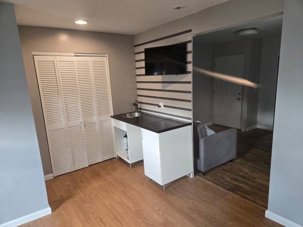 1 bedroom with a bathroom and a living room, personal side entrance with backyard access. Dog on premises.