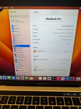 MacBook Pro 13 Late 2017 250 GB 3.1 GHz i5 Touch Bar charger+cable Battery life (normal) Perfect condition