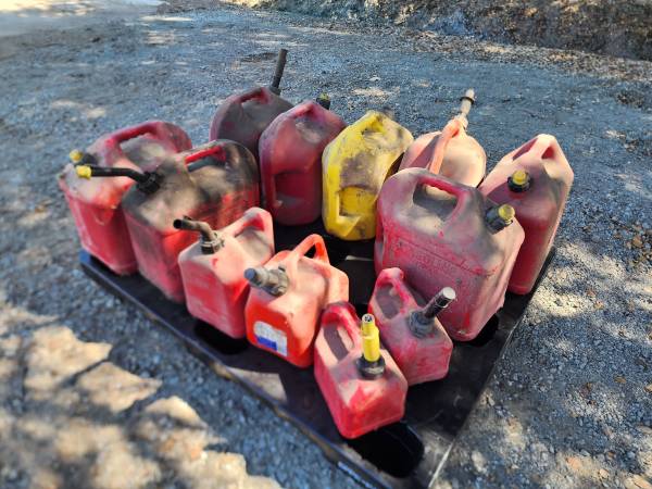 As you can see, I have a LOT of good gas & diesel cans, jugs, jerry can, etc... Diry on the OUTSIDE from storage in the barn. As of posting (I will update posting as they sell, otherwise YES THEY ARE STILL AVAILABE) I have the following: