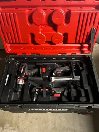 Selling a lightly used Craftsman cordless tool set - 6 power tools with rolling hard case. All manuals and extra attachments.
