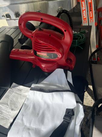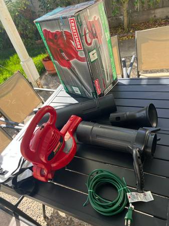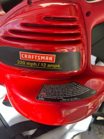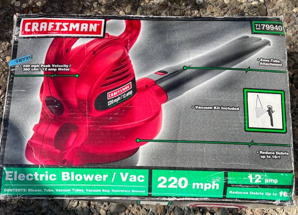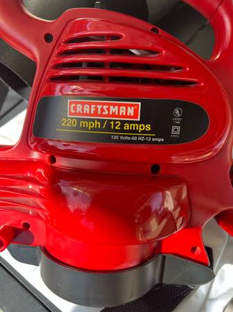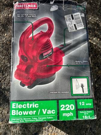 Craftsman Electric Blower/Vacuum. New in box. Comes with new extension cord. Some wear on box, but item itself is new. It has a 12-amp motor and can reach a peak velocity of 220 mph. The tool is...