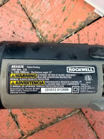 Rockwell Sonicrafter model RK5102K electric multi-tool, shown with several accessories including original soft bag, still in great clean condition.