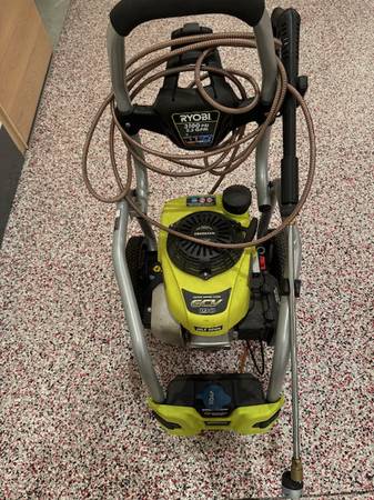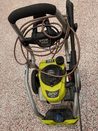 Only used once for a few hours. Like New Ryobi Over Head CAM gas pressure washer with Honda engine. 3100 PSI, 2,5 GPM