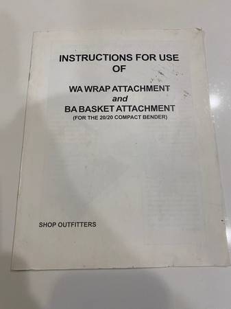 I have a restored powder coated shop outfitters bender 20/20 for sale. I believe I have all the attachments for it with a few round and square dies. Love this tool and hate to sell can do many things for a small package but just sits now. Also how a printed copy of the manual for it. I also made a plate so you can use the bender without anchoring it to the ground. I am in Livermore.