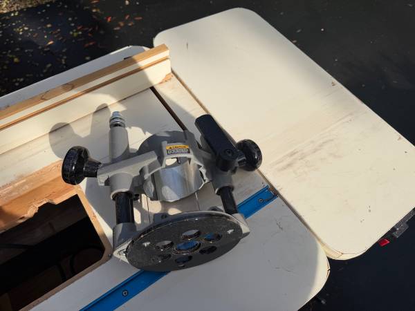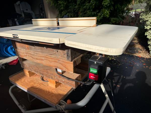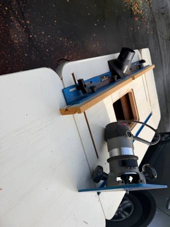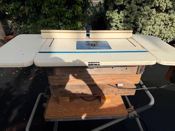 Router, base, plunge base all in good/excellent condition. The table is homemade, and uses Rockler components for router mounting and fence HW. It also includes a collapsable, rolling stand.