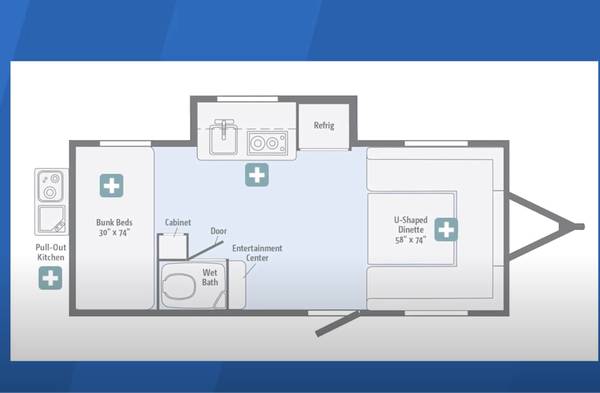 The 2018 Winnebago Minnie Drop is an ultra-lightweight teardrop-style travel trailer known for its aerodynamic design, easy towing, and compact features like a wet bath, dinette that converts to a bed, and optional outside kitchen or slide-outs. Key features often include a fiberglass exterior with an embedded color, power awning, LED lighting, outside shower, Jensen Bluetooth stereo, convection microwave, and refrigerator. The Minnie Drop is designed for convenience and durability, with options like an off-road package providing increased ground clearance.