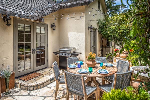 The 3-bedroom, 3 full-bath home, built in 1925, has the timeless look of an English country cottage but has been fully renovated with upscale interiors by award-winning architect David Martin. The 2,009-square-foot pet-friendly residence provides highly coveted extra living space not usually found in Carmel homes, and includes a high-end chef’s kitchen, two Carmel stone gas fireplaces, artistic vaulted ceilings, oak hardwood floors, and beautiful detailing indoors and out.