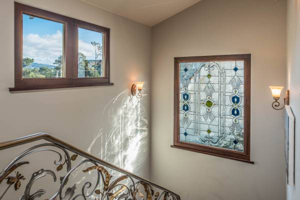 This custom-built home includes unique Old World designer touches such as hand-hewn walnut floors, intricate hand-laid tile and Italian marble, vaulted ceilings, stained glass, and artisan-wrought iron railings, as well as a comfortable open floor plan on the first floor that makes it ideal for hosting family gatherings or reunions of close friends.
