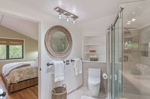 Lower Level/Main Level: Bedroom #2 - Queen Bed, en suite bath with shower over tub. / Bedroom #3 - King Bed, en suite bath with shower over tub. This bedroom is part of the guest suite which is separate from the other bedrooms.