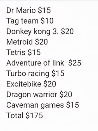 Lot of Nintendo games with cases. Will sell individually see list per each game. Willing to negotiate in price.