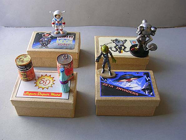 I'm selling a lot of my Fallout items to make some much needed space.. I've been selling on ebay and etsy for years, but I'd like to offer some items locally.. I've got custom painted figures, stash tins, Nuka Cola caps, miniature figures, dioramas, and more at a wide price range..