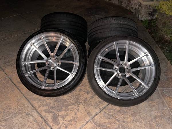 Selling my 2 Piece Velos Forged wheels. Staggered set Fronts 275 35 21 Rears 315 30 21 on Pirelli P Zero Nero tires. 5x120 fit BMW (m5 m6 6 series 7 series x5m x6m) Range Rover (sport autobiography) etc. No bends no cracks or leaks. Originally 10k set without tires (high performance quality wheels). Compliments everywhere that I go. For more information or interested email me with number (serious inquiries) As Is. Thanks
