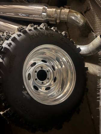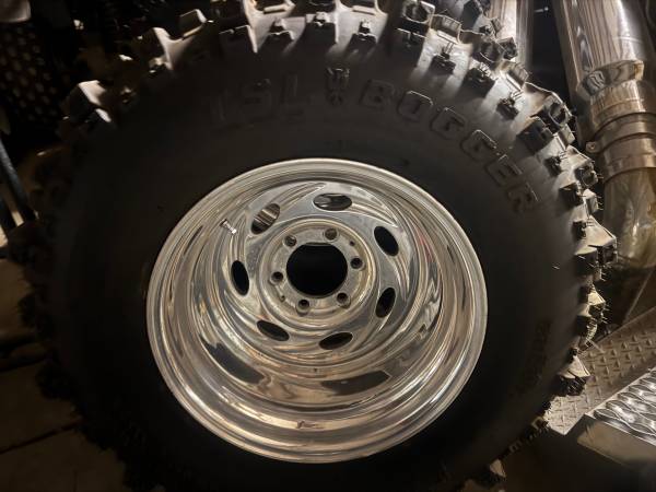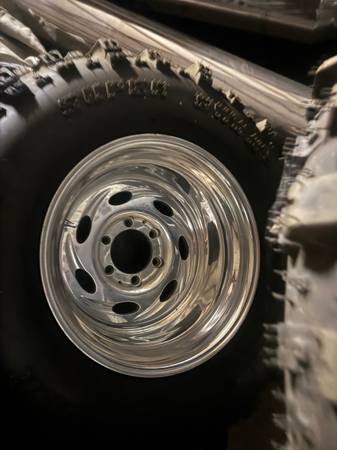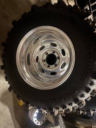 Weld Typhoons 16.5x12 wheels for 6 lug Chevy/GMC/Toyota Wheels are great shape . Tires 33x14.00x16.5 Super Swamper boggers brand new .