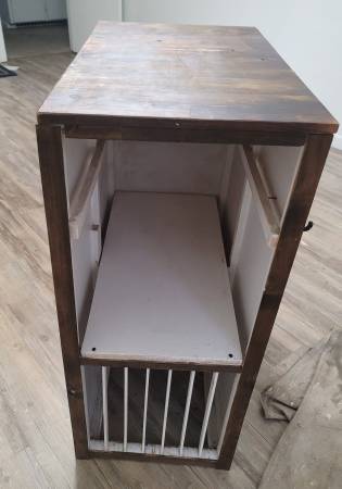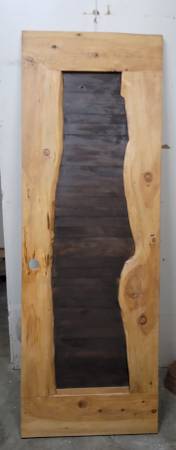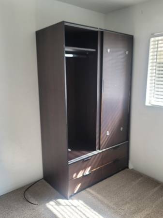 FREE! I have one tall bookcase (about 7 feet tall), a dresser (79 inches tall, 24 inches deep and 46 1/2 inches wide), a long shelving unit (about 8 feet long), and a custom wood door available. You will need to pick it up, bring a truck, and have at least two people to move it.